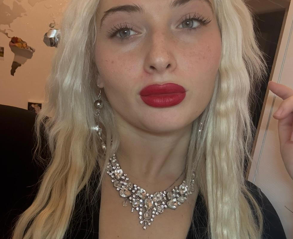 Mi chiamo Krystal, ho 24 anni, sono alta 1,65, ho i capelli biondi e gli occhi azzurri, sono di corporatura media e porto una seconda di seno.